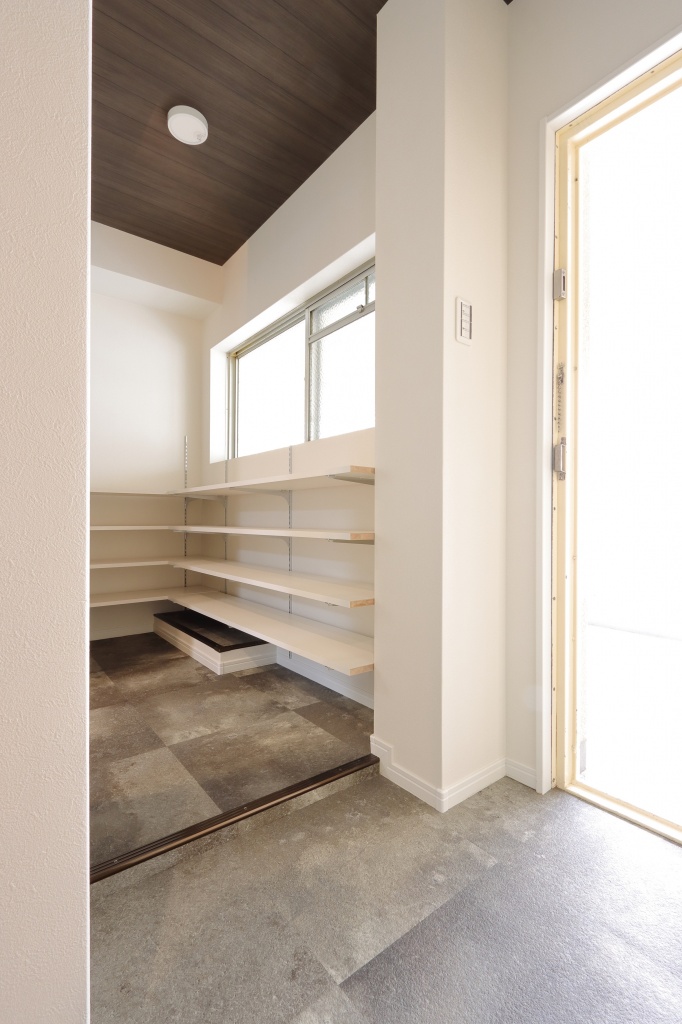 もともとお部屋だった部分を玄関に取り込み、シューズクロークを設置し、