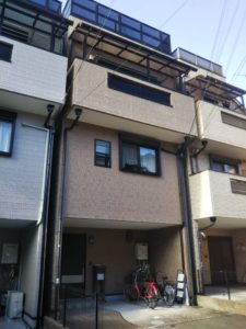 もともとは、ベージュ色の外壁でしたが、今回は全く違う濃いグレー色で塗装しました。