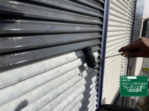 下塗り後、上塗りのスーパームキコートの塗料を2回塗っていきます。