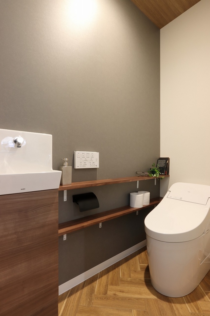 トイレを新設!TOTOウォッシュレット一体型GG1で汚れにくく、お掃除がラクに。ヘリンボーン床で上品で洗練されたおしゃれな空間に仕上がりました!~京都市西京区A様邸~