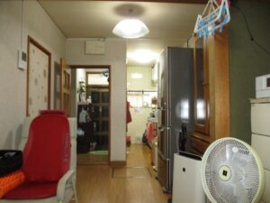 真ん中に間仕切りがあり、少しせせこましい感じのダイニングキッチンでした。