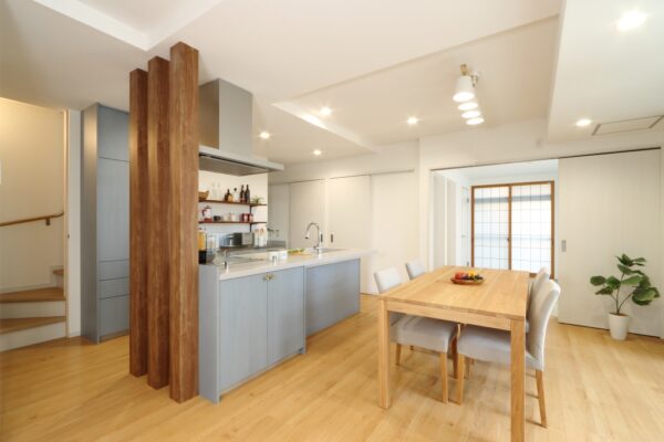 部屋の真ん中にあった間仕切りをなくし、LDKにしました。