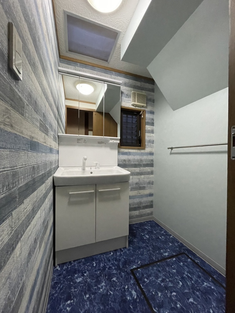 洗面所リフォーム★デニム柄クロスの洗面所~京都市山科区N様邸~