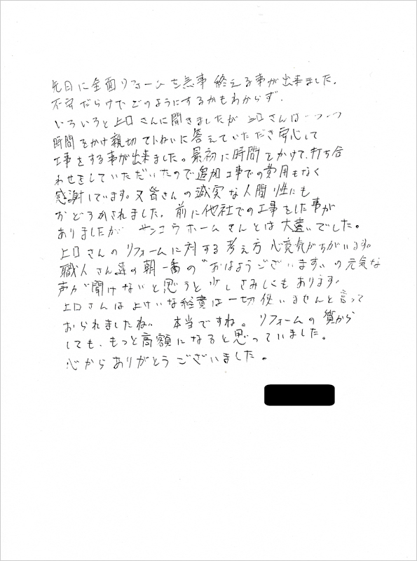 上口さんのリフォームに対する考え方、心意気がちがいます。
