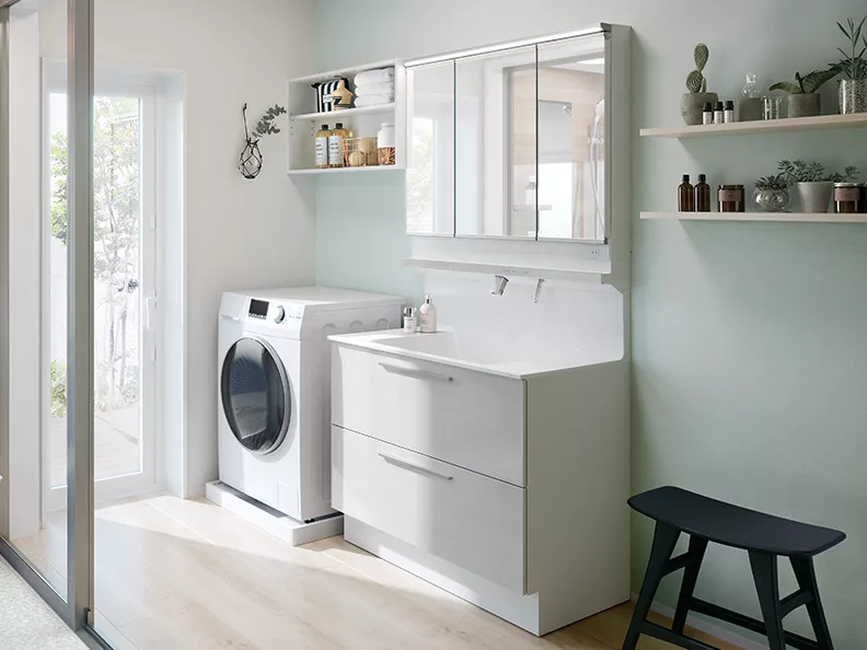 スタイリッシュドレッサー自動機能や除菌機能が毎日をスムーズにし、お掃除をラクにします。統一感あるステンレス調カラーが洗練された雰囲気を演出します。 -