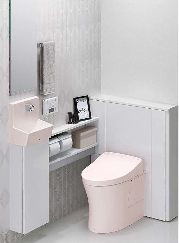 心地よい空間づくりレストルームに必要な器具をパッケージした、レストパル。 たっぷりの収納力や機能性はそのままに、シンプルでデザイン性のある空間を実現します。 もちろん、おトイレに必要な基本装備も充実しています。 -