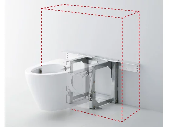 十分な強度キャビネット内の取付スタンドに便器を固定。便器が浮いていても安心です。木造住宅にも設置可能。(レストパルFのみ)