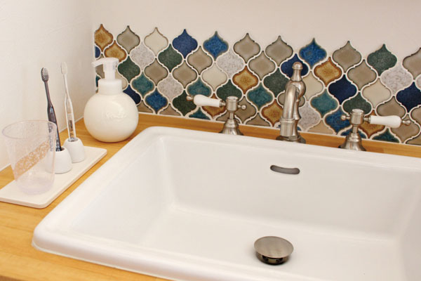 セカンド洗面台は「見せる洗面」です。タイルをあしらったり、お気に入りのミラーと組み合わせたりすることで、家具のような佇まいに仕上げることができます。